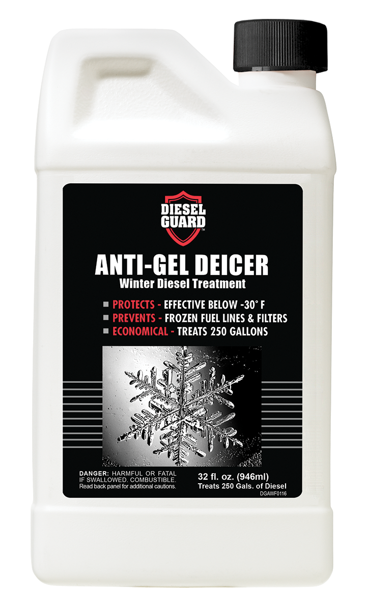 Diesel Guard Anti-Gel Deicer contains VT330A wax crystal modifier, wax anti-settling agent (WASA), heavy wax modifier and "SMART" Deicer to help prevent gelling and icing in ULSD and biodiesel blends. Includes multifunctional detergent to keep injectors clean, VT-101 lubricity improver, Corrosion Guard Technology, stabilizer and cetane improver to help improver cold starts.